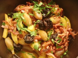 Ein köstlicher Kartoffel-Schalotten-Pflaumen-Eintopf mit Schinken für die Fastenzeit. Entdeckt von Frau lamiacucina in einem piemontesischen Weinheft. Während ich mit dem Weinhändler verhandelte, memorierte meine Frau das Rezept. Der Name des Gerichtes und seine Herkunft gingen vergessen. Geblieben ist ein (für mich unerwartet) begeisterndes Gericht, das die Aussage eines Basler Gastronomen widerlegt: „Eintöpfe sind mir ein Greuel. Diese Art zu kochen hat keine Berechtigung. Alles in einen Topf schütten und davonlaufen, nein, das kann nichts Gutes geben“. Ob es wohl am Davonlaufen oder nur am Namen „Eintopf“ liegt? zum Rezept: