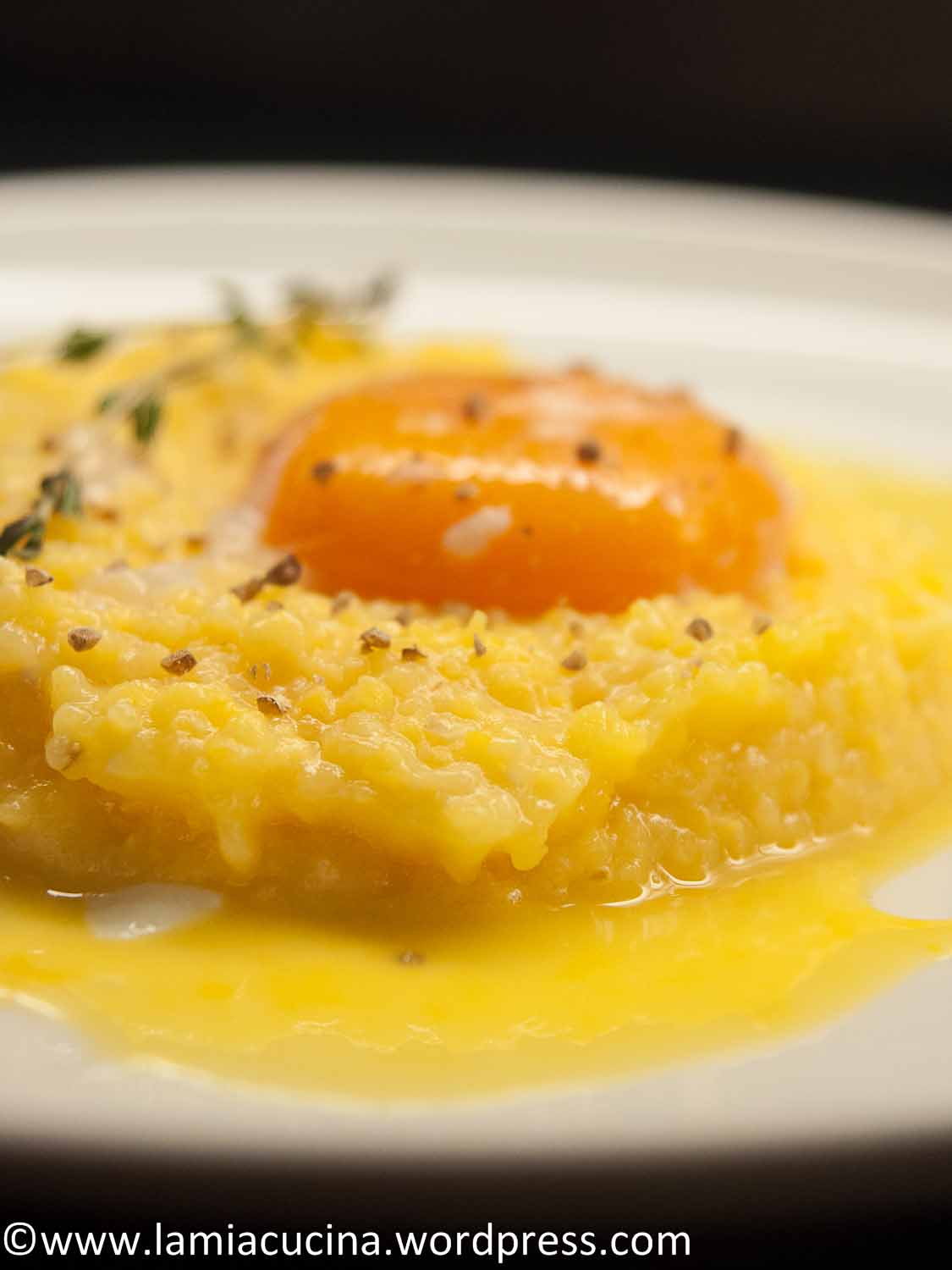 Polenta mit Eigelb habe ich vor drei Wochen gemacht, war aber mit dem Foto so unglücklich, dass ich’s (noch) nicht verbloggen konnte.