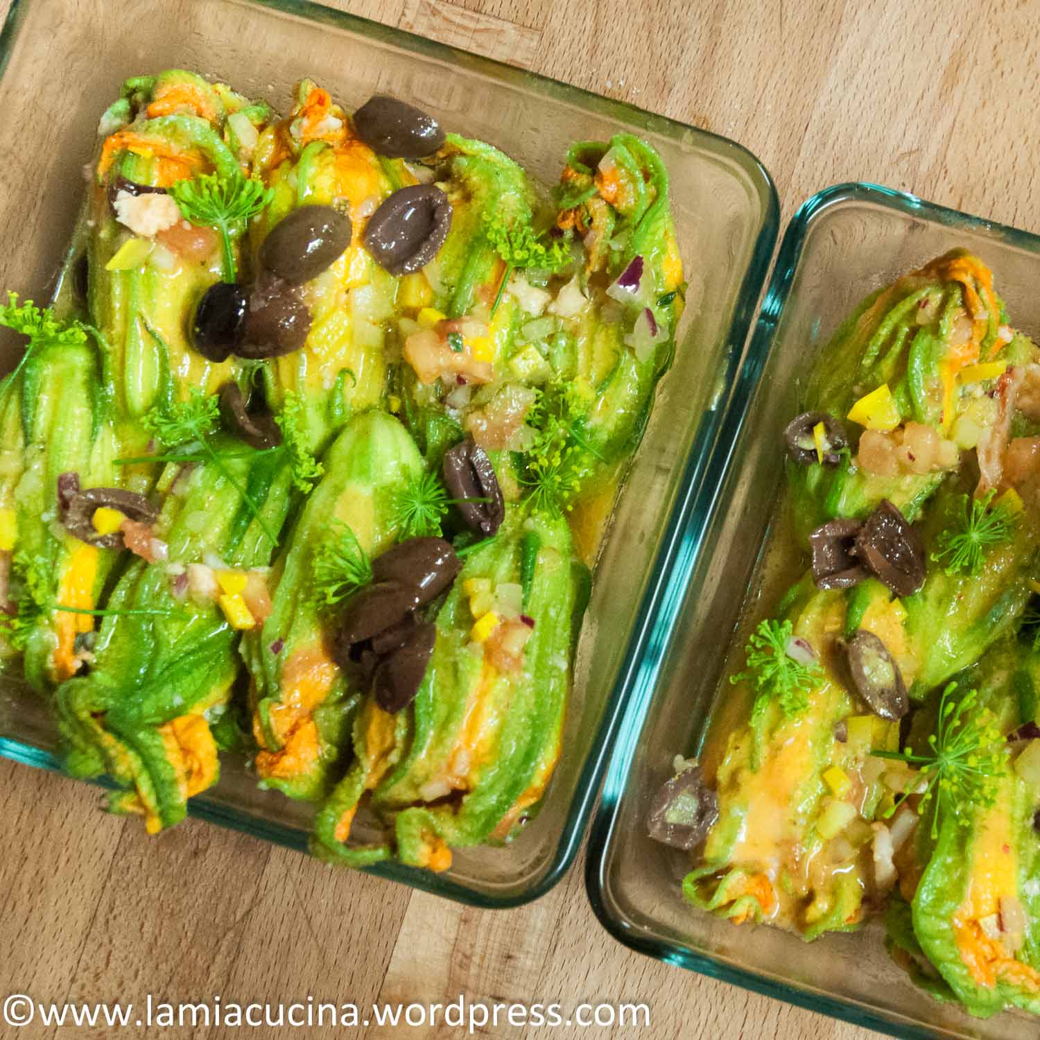 Rosenblatt: Hors-d’oeuvre Juli 20, 2015 1500 × 1500 Hors d’oeuvre riche, ein Samstag in Luzern Gefüllte Zucchiniblüten an Scampi-Jus