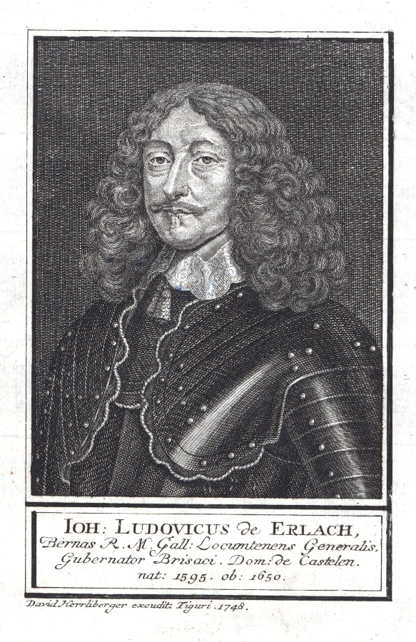 Im Sommer 1638 trat Hans Ludwig von Erlach im Rang eines Generalmajors in Schwedisch-Weimarischen Dienst. Bernhard, obgleich offiziell schwedischer General, war durch mangelnde Unterstützung der Schweden schon 3 Jahre zuvor in Verhandlungen mit Kardinal Richelieu getreten und erhielt von den Franzosen jährliche Subsidiengelder zum Unterhalt der Weimarischen Truppen. Der innere Widerspruch, dass eine katholische Macht die Sache der Reformierten unterstützte, mag heute verwundern, dabei muss aber berücksichtigt werden, dass erstens Macht mehr gilt als Prinzipien. Zweitens die Heeresführer damals selbstständige General-Kriegs-Unternehmer waren, die für Anwerbung, Unterhalt, Besoldung und Bewaffnung ihrer Soldaten meist selber aufkommen mussten, dafür aber von ihren Auftraggebern pauschal (und fürstlich) entlohnt wurden. Blieben die Zahlungen aus, hielt sich das Kriegsvolk anderweitig und durch Marodieren schadlos nach dem Sprichwort: „Krieg ernährt den Krieg“.