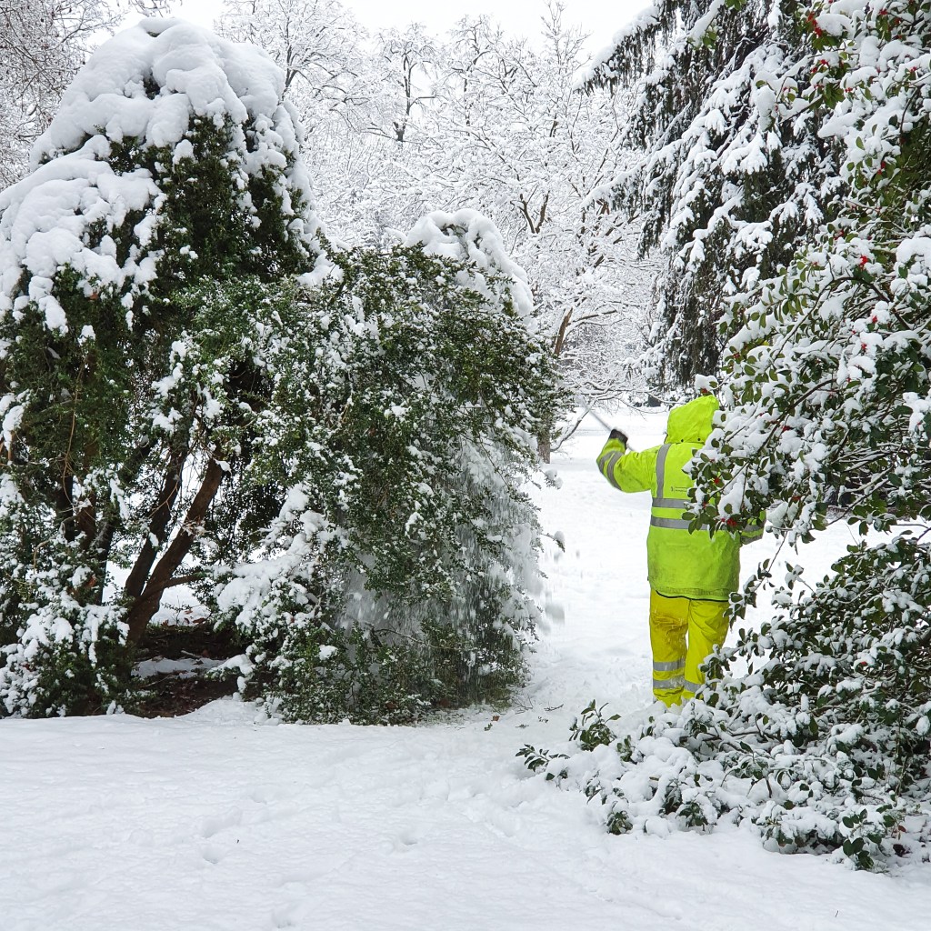 Ein gelb-grüner Schneeherabschüttler an der Arbeit. Heissen die so?