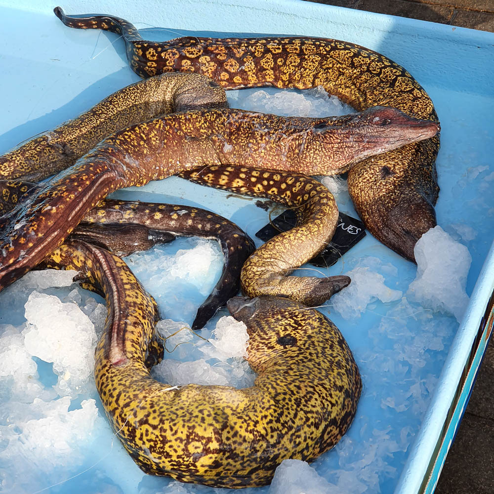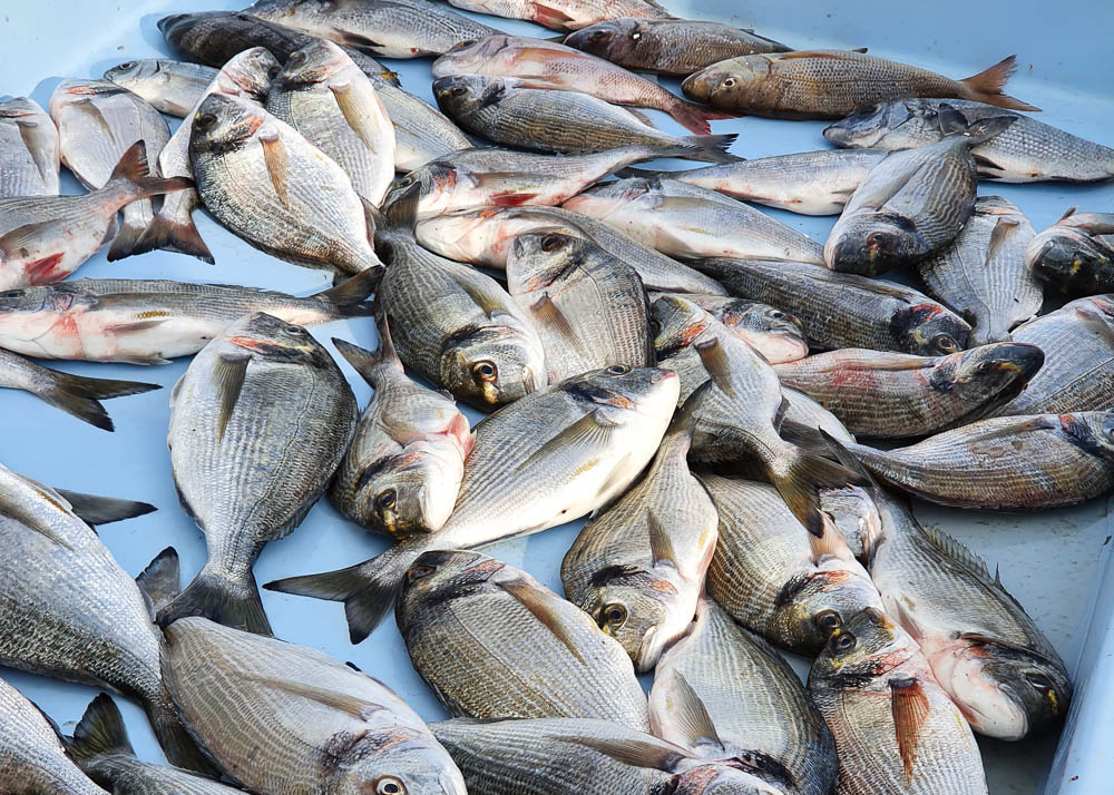 Ein paar Kutter entladen ihren täglichen Fang (auch Sonntags) im Hafen.