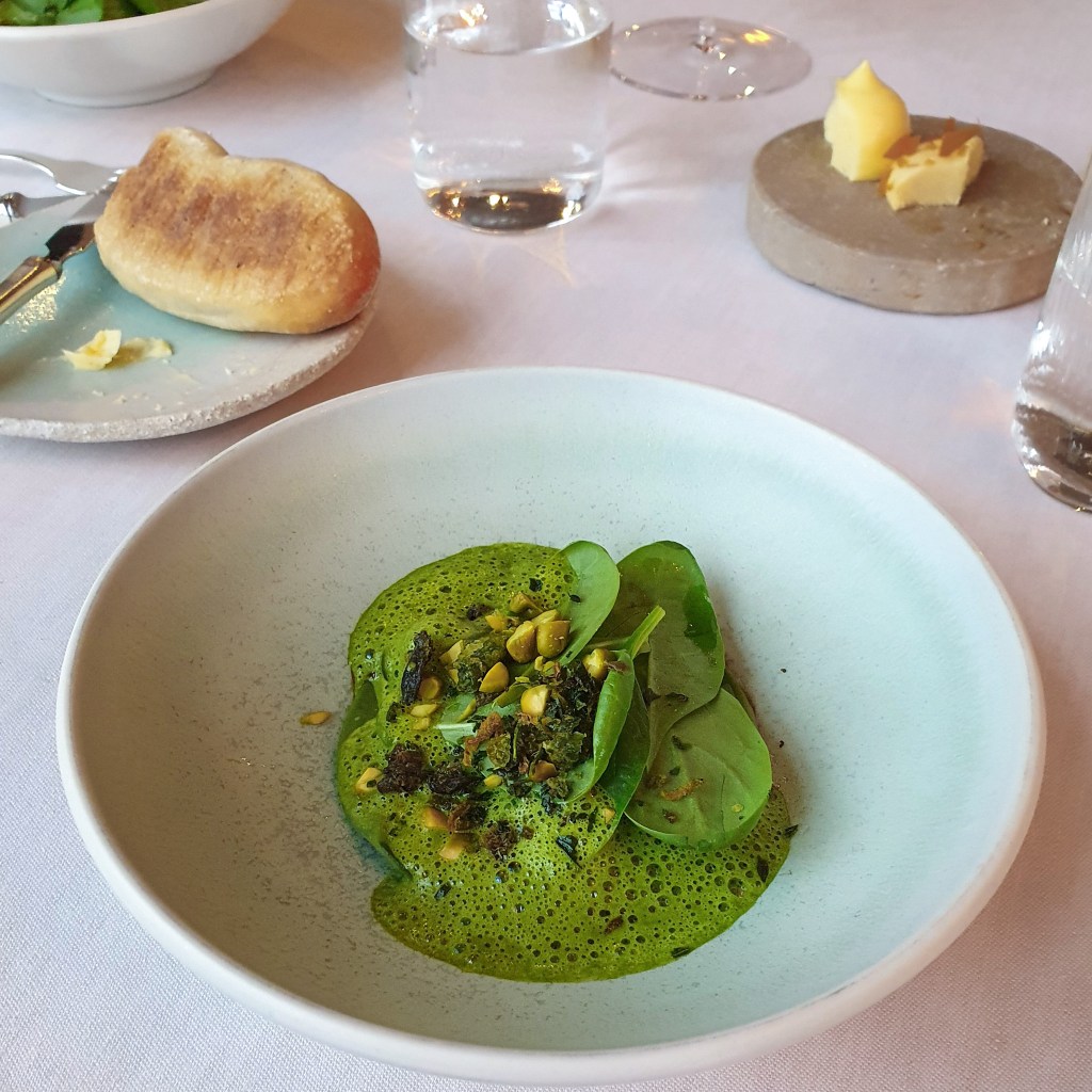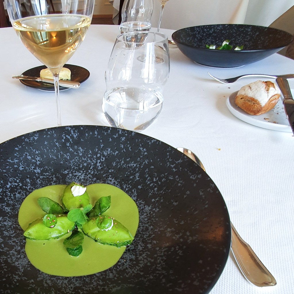 Nach den Brennesselschnitten erfreuten wir uns an manch guten Mahlzeiten, zuhause wie auswärts, hier an den Brennesselravioli bei Jérémy Desbraux im Maison Wenger in Le Noirmont.