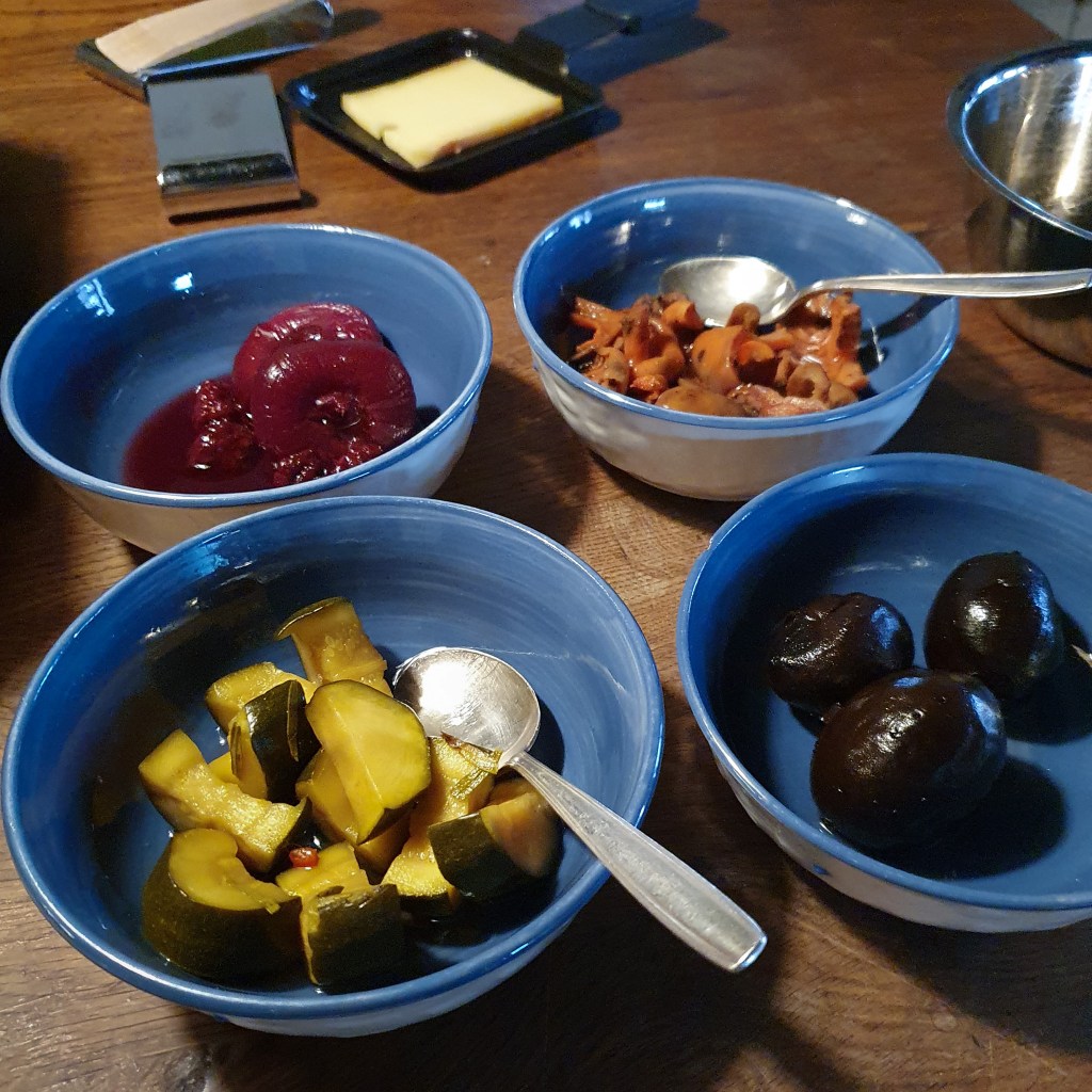 in der Pause stellt sich die Frage, was wir an Weihnachten kochen werden. Fondue mit selbst gesammelten Totentrompeten? Oder Rohmilch-Raclette mit verschiedenen Bergkartoffeln?