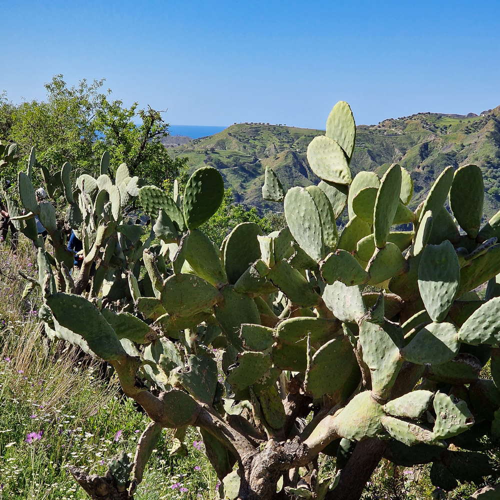 Wenig verführerisch: Opuntien, hier mit Meersicht, ein invasiver Neophyt. Bei Kühen und Ziegen trotz ihrer Stacheln beliebt.