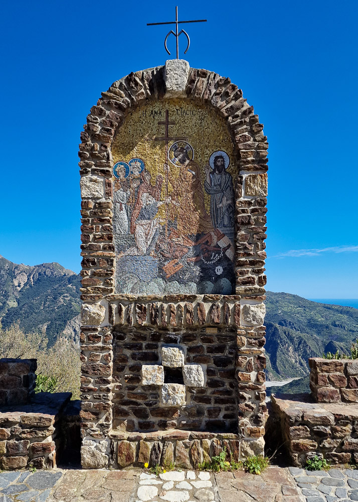 Hinter einem Bergvorsprung, gut versteckt vor räuberischen Sarazenen, liegt das grekanische Gallicianò. Der Blick auf Ikonen, Himmel und Meer.