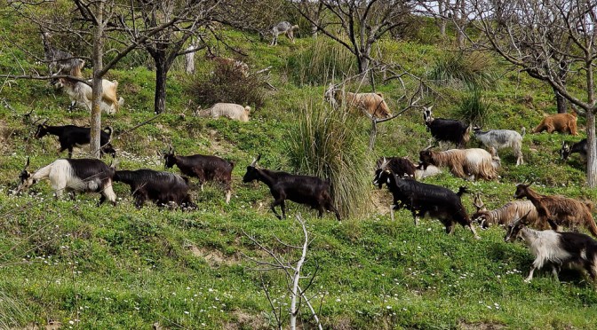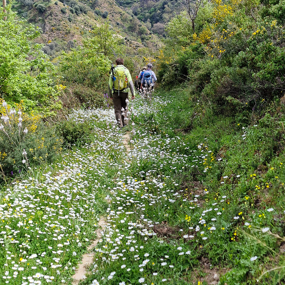 von Bova aus wandern wir nach Palizzi. Erst auf blumengesäumten Maultierpfaden das Val dei mulini runter, an der Azienda agricola La valle dei mulini vorbei, die uns täglich den vorzüglichen Ziegenkäse zu unsern Picknicks liefert.