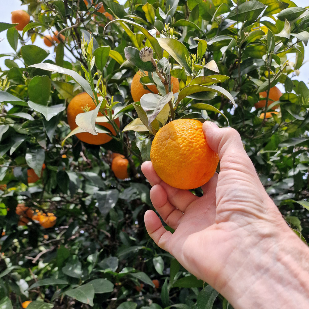 Dort dürfen wir uns en passant noch frische Mandarinen einer späten Sorte vom Baum pflücken.