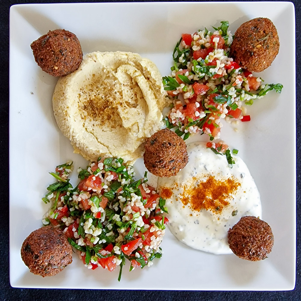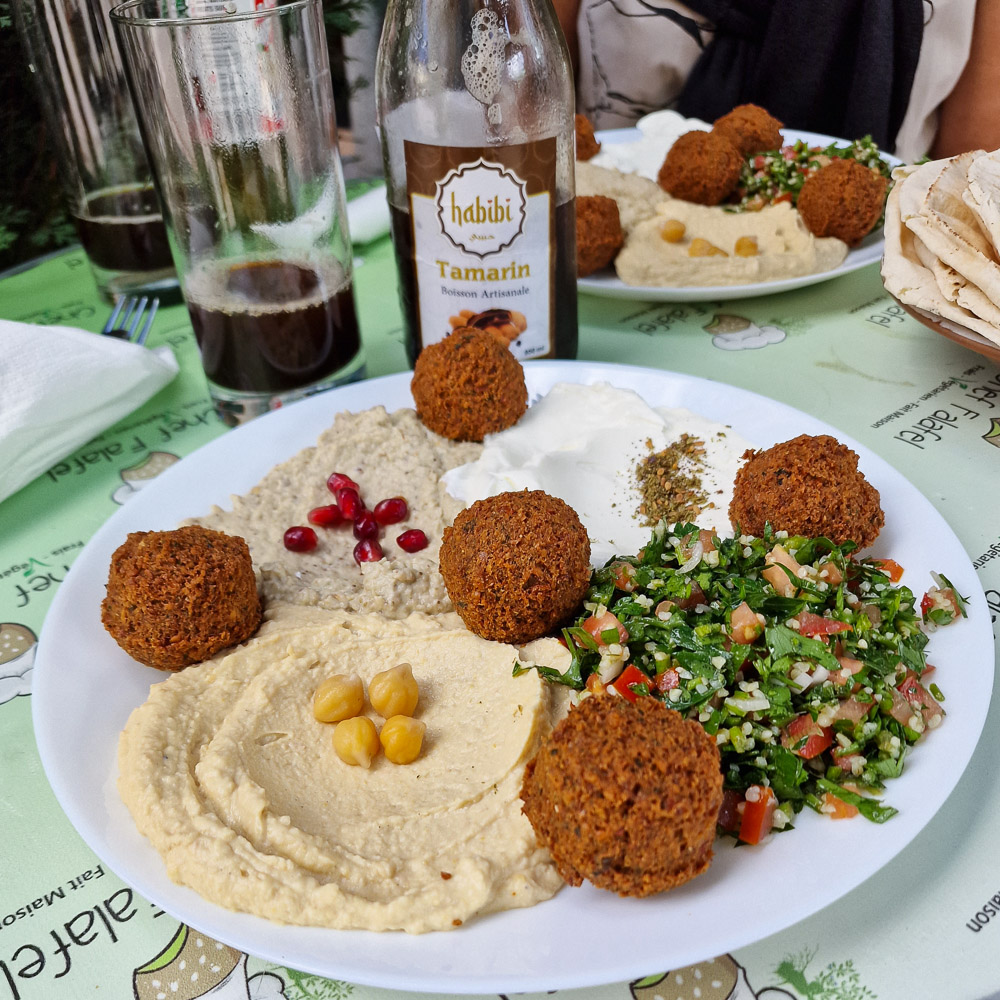 Diese Falafel gehören, dem Vernehmen nach, zu den Besten, die in der Schweiz erhältlich sind. Eingebettet in einen Mezze-Teller mit Labneh, Baba Ganoush, Taboulé und Fladenbrot. Dazu ein Tamarindengetränk, als Dessert ein orientalisches Kardamom Kaffee-Eis und Baklava, alles hausgemacht. Die Falafel von Abu Hassan und Assad Bilal, den Chefs von „Chef Falafel“, nehme ich jedenfalls als meine persönliche Messlatte.