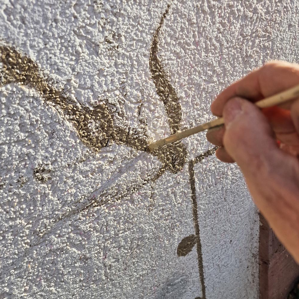 und die teils völlig verblassten Fassaden-Ornamente mit Farbe (freihändig) nachziehen…