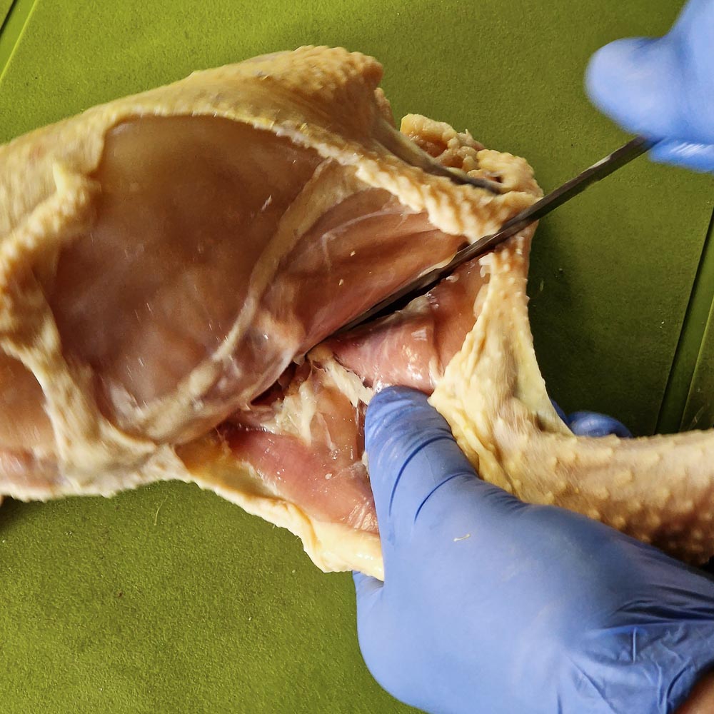 „Huhn oder Hahn? Es gibt Legerassen und Fleischrassen. Die Fleischrassen sind vollfleischig, es werden sowohl die männlichen als auch die weiblichen Küken gemästet, und die Mast dauert gerade einmal ein paar Wochen. Die Legerassen sind schmalbrüstig, das bedeutet, dass sich die Mast der Hahnenküken nicht lohnt; sie werden nach dem Schlupf aussortiert, da sie ja keine Eier legen werden. Es gibt auch Zweinnutzungsrassen, sie haben sich aber bisher nicht durchgesetzt: wegen der Wirtschaftlichkeit.“