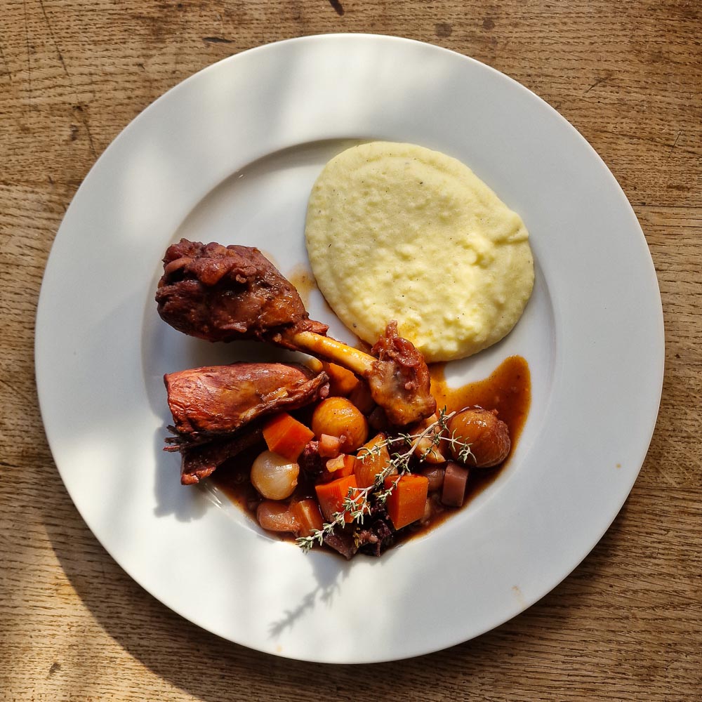 Mit all den Geflügelknochen im Gericht kein „Fine Dining“. Doch so hat man schon zu Zeiten des französischen Königs Henri IV (1553-1610) das Geflügel gegessen. Und für die Knochen gibts ja Schälchen.
