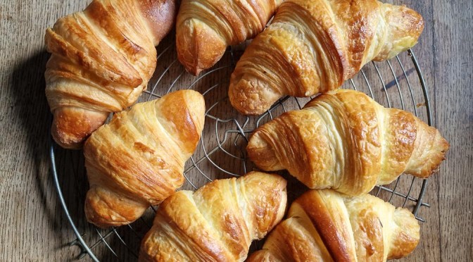 Seitdem ich auf Instagram die viralen Videos eines Bäckers gesehen habe, der den wohl fluffigsten und wackeligsten Croissant-Teig zubereitet hat, bin ich beinahe besesser davon auch mal richtig gute Croissants selbst zu machen!