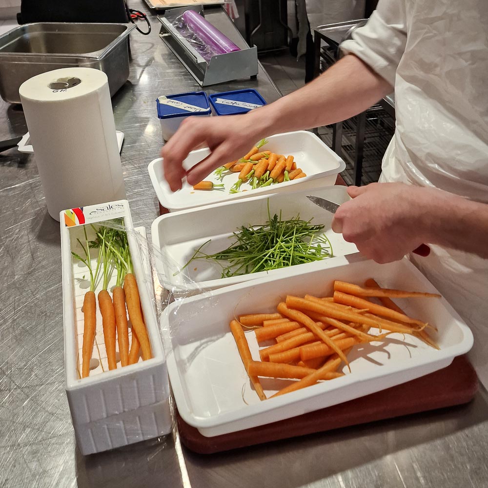 Nach 15 Uhr übernimmt die nächste Schicht die Vorbereitungen für den Abend. Alles frisch, von Grund auf à la minute zubereitet. Kein sous-vide, nichts Vorgekochtes.