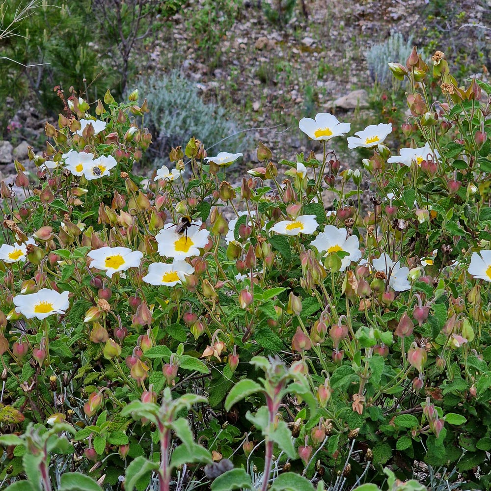 oder die salbeiblättrige Zistrose, Cistus salviifolius, mit geflügeltem Liebhaber:
