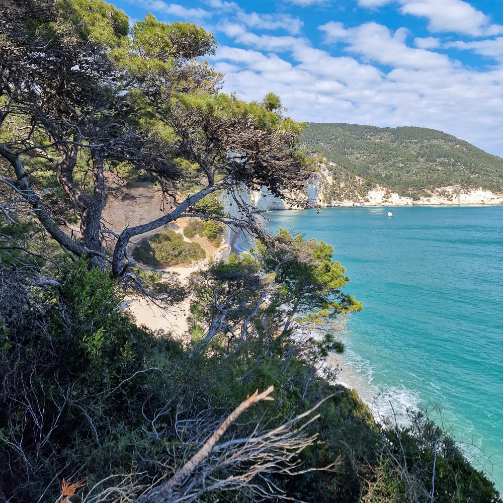 Die Aussicht, unter dem Schnee begrabene Orchideen ausbuddeln zu müssen, war wenig verlockend. Das Ersatzangebot umso mehr. Auf der Küstenstrasse SP53, derLitoranea fuhren wir bis kurz nach Baia delle Zagare. Ab hier verläuft der Wanderweg Mergoli-Vignanotica als gut ausgebauter Pfad entlang der Küste.