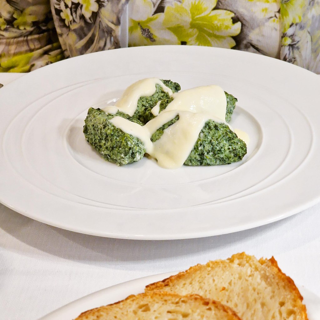vegetarisch für Frau H.: Spinat-Ricotta Gnudi mit Pecorinosauce