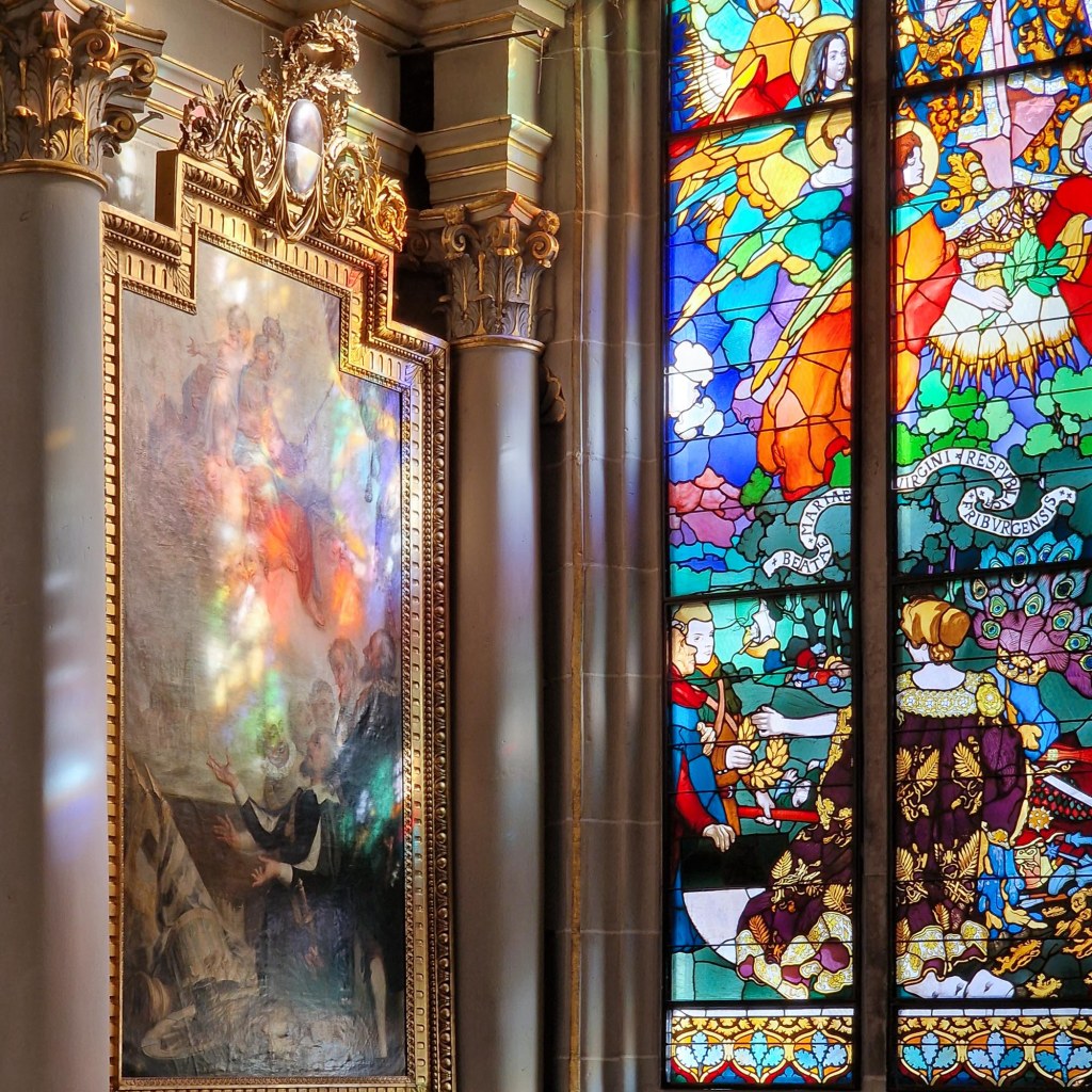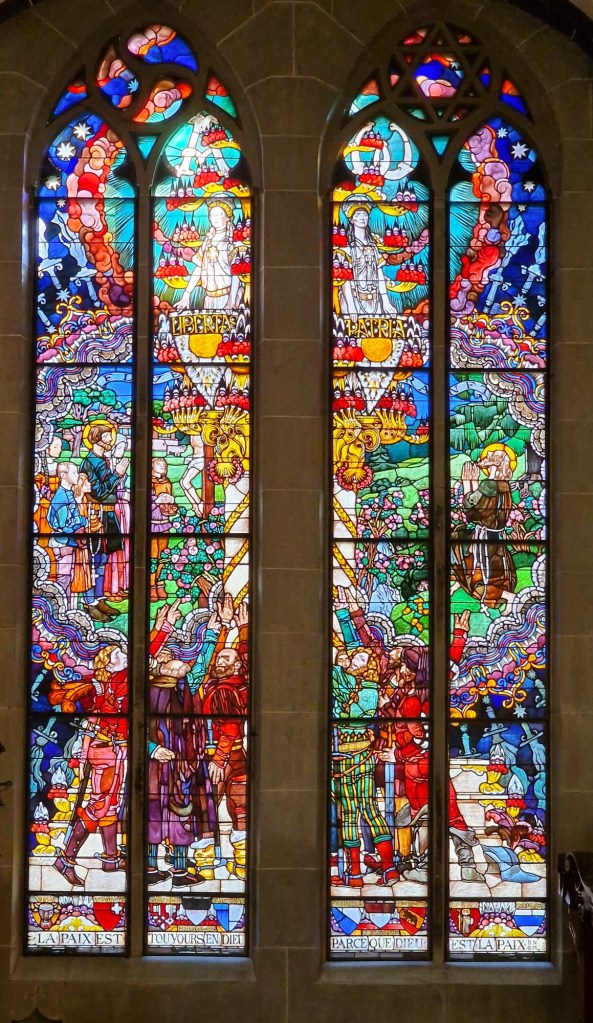 Am Nachmittag Besuch der gotischen Cathédrale Saint-Nicolas. Die St. Niklauskathedrale wurde ab 1283 bis 1490 in mehreren Etappen erbaut an Stelle eines romanischen Gotteshauses. Neueren Datums sind ihre wunderbar leuchtenden Fenster. Die Glasfenster wurden vom polnischen Künstler Józef Mehoffer entworfen und zwischen 1896 und 1936 von einem Freiburger Atelier in Bleiglasfenster umgesetzt. Hier das vom Jugendstil inspirierte Fenster „Maria vom Siege“.