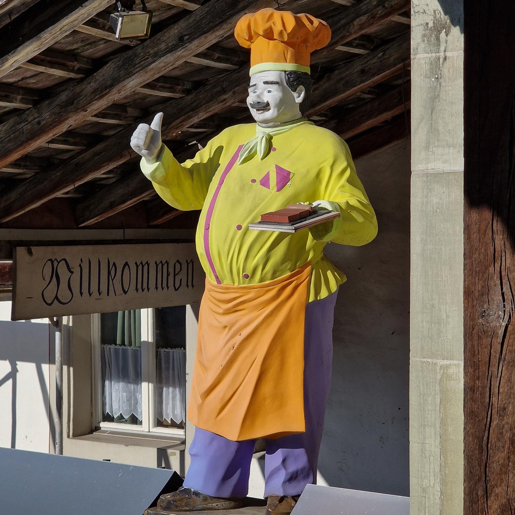 Ein alter Bekannter aus meinem kulinarischen Gruselkabinett, frisch aufgepeppt, heisst uns an der gedeckten, hölzernen Bernbrücke willkommen.