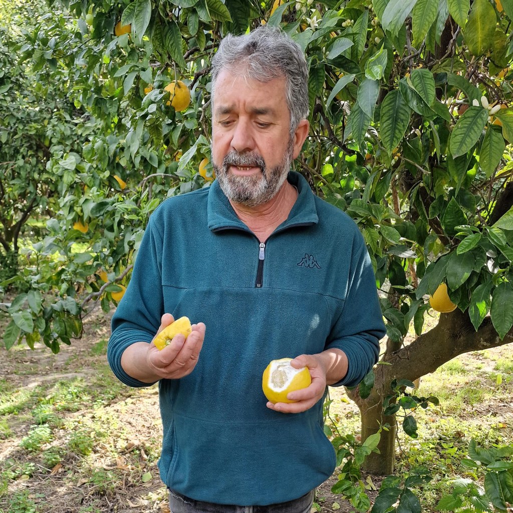 Ugo Sergi, Besitzer des Bergamottenhains erklärt uns Herkunft, Geschichte, Eigenart, Verwendung und Wirkung der Bergamotte. Ein Mensch, dem man stunenlang zuhören könnte. Mehr darüber siehe Il Bergamotto.