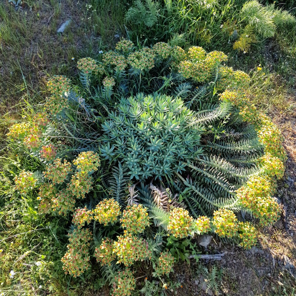 Am nächsten Morgen Aufbruch Richtung Roghudi, der Geisterstadt (siehe auch Vecchia Roghudi). Gleich zu Beginn wartet uns ein schönes Exemplar der steifen Wolfsmilch, Euphorbia rigida.