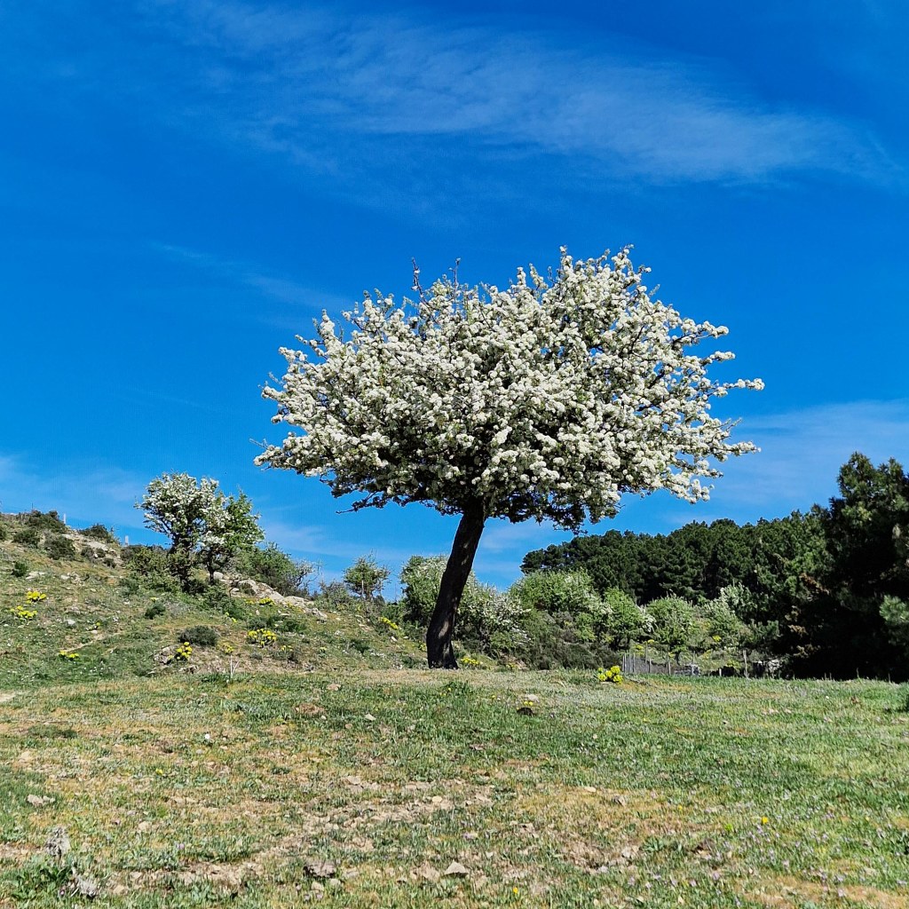 Auf der Hochebene über Bova blühen die Wildbirnen, Pyrus spinosa.