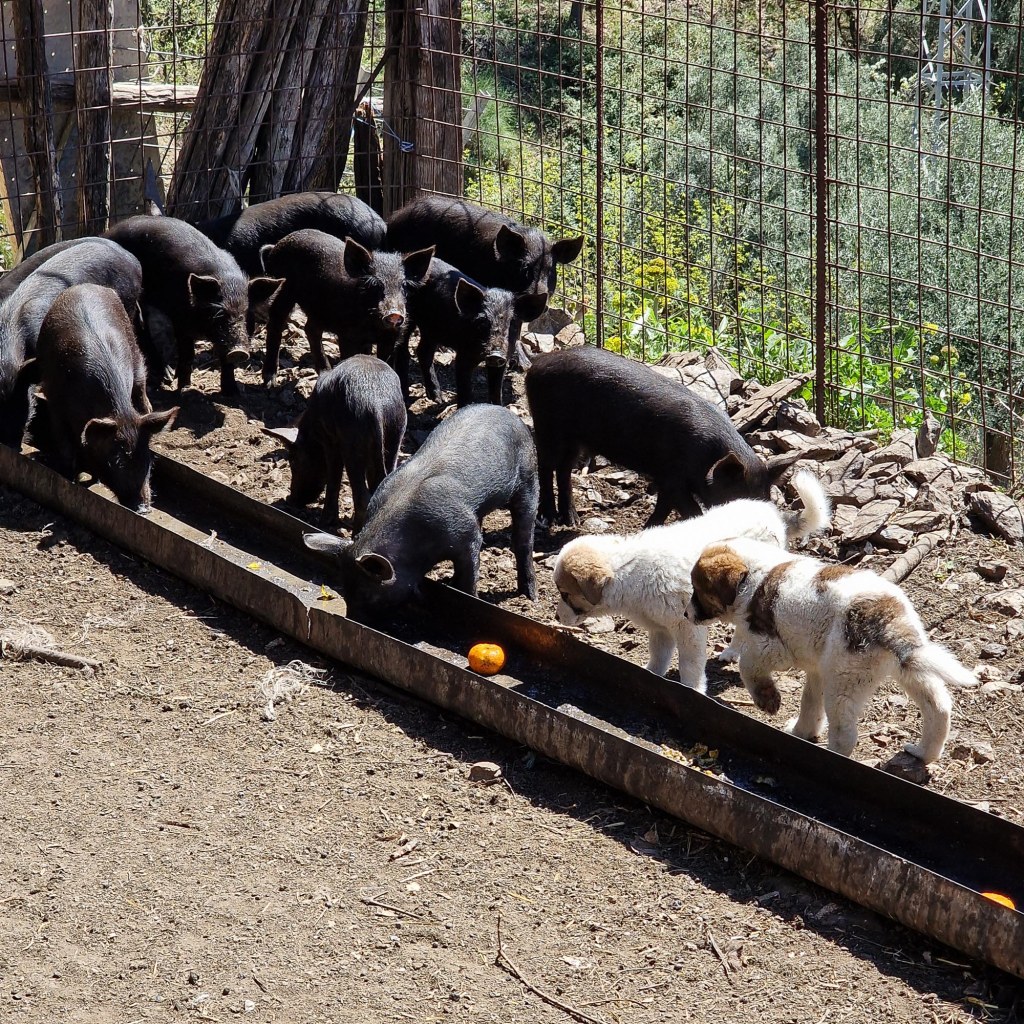 Unterwegs treffen wir wieder auf die schwarzen Schweine von Kalabrien, aus denen die gute Sopressa hergestellt wird. Der Bauer führt uns durch den Stall mit den Jungschweinen, zeigt uns den Nachwuchs der Herdenhunde…