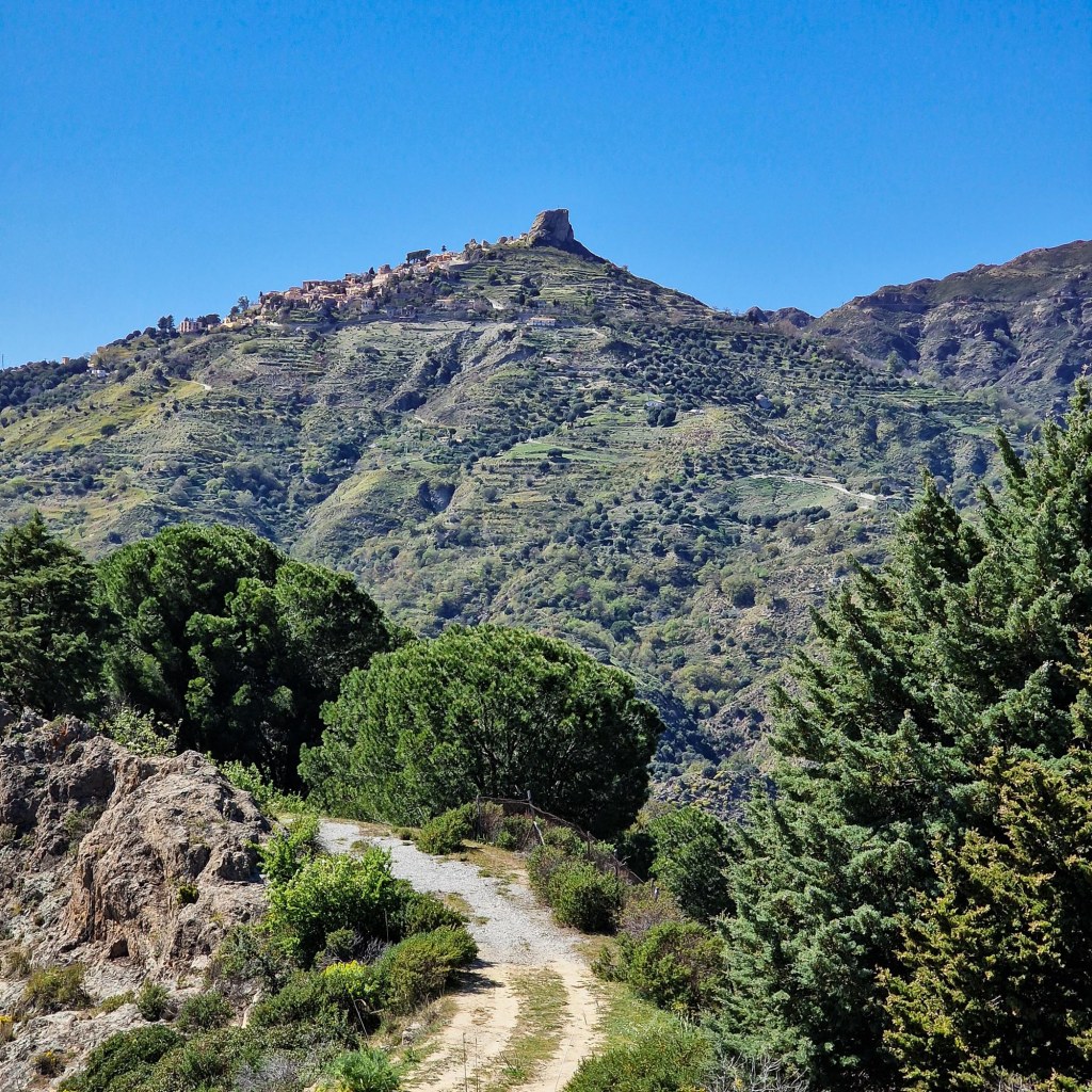 Im Valle dei mulini Blick zurück auf Festung und Städtchen Bova.