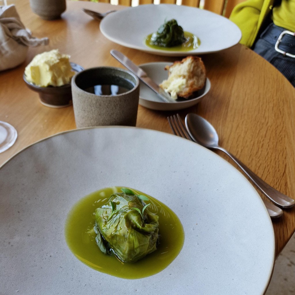 Ambitionierte Köche, insbesonders jene, die sich auf vegetarische Küche spezialisieren, wollen/müssen sich irgendwie von herkömmlicher Landhaus-Küche differenzieren. Das geschieht einerseits mit aufwändigen Kochtechniken, andererseits mit dem Griff in die Exotenkiste und zur Pinzette. Das Ergebnis ist nicht in jedem Falle besser als Spätzle mit Rotkraut, aber allemal interessant.
