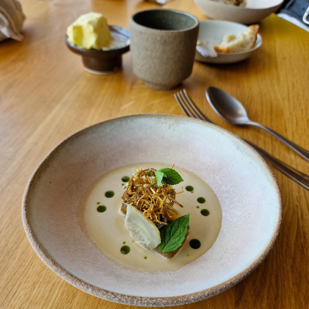 Auch uns verlangte nach Sündenvergebung. Wir versuchten, Läuterung durch lustvollen Verzicht zu erlangen. Das junge Team um den ambitionierten Küchenchef Dominik Hartmann (Ausbildung u. a. bei Andreas Caminada und Fabian Fuchs) begeistert mit einer lustvoll emanzipierten, vegetarischen Küche. Saisonal, regional, modern, anfänglich mit, seit 2 Jahren fleichlos, kochte er sich zackig in die höheren Sphären der Spitzengastronomie.
