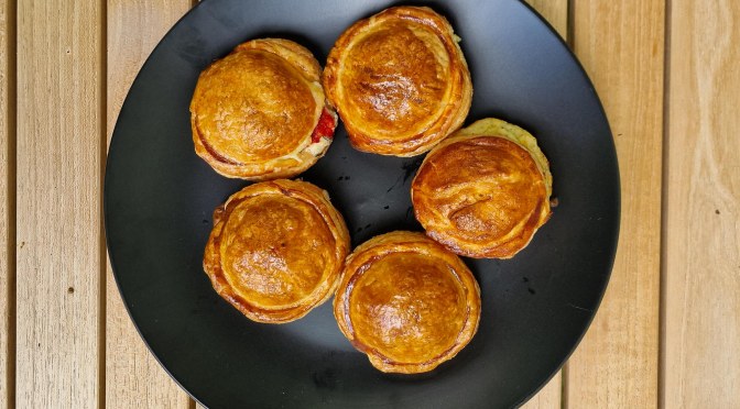 Die Rheinbadesaison wird in wenigen Wochen beendet sein. Da gilt es rechtzeitig an der Figur zu arbeiten: Winterspeck für Notzeiten anzulegen. Mit einem Sommergericht, wie es als Streetfood an apulischen Stränden gegessen wird: Rustici leccesi, deftige Blätterteigküchlein. Gefüllt mit Béchamelsauce, Mozzarella und Tomaten.