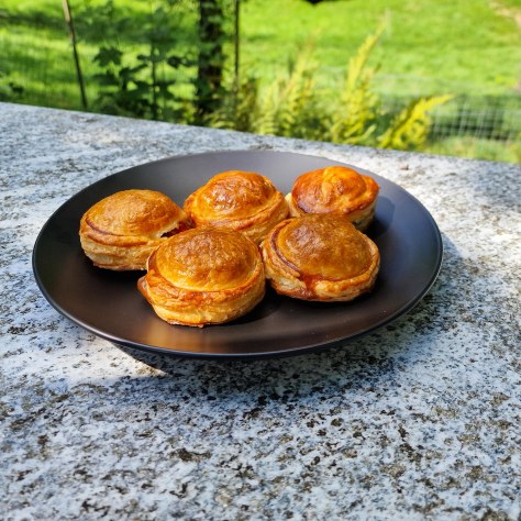 ca. 300 g Blätterteig, (L.: Fertigteig 320 g, rechteckig, 20×32 cm)