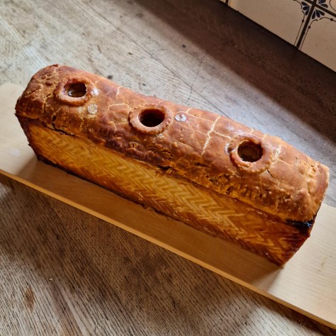Gut, ich habs wieder einmal probiert. Einfach. Fast rustikal. Eigentlich keine Hexerei und doch ist sie mir teilweise missraten. Ich hatte an der Teigmenge geknausert, so dass der Teig für den Deckel kaum mehr reichte. Das geht gar nicht. Pasteten verlangen verschwenderische Grosszügigkeit. Die Füllung war sehr gut, daran wurde nicht gespart, eine meiner besten. Doch der Teighülle sieht man Knausrigkeit und verlorene Übung an. Rezept am Ende des Beitrags.