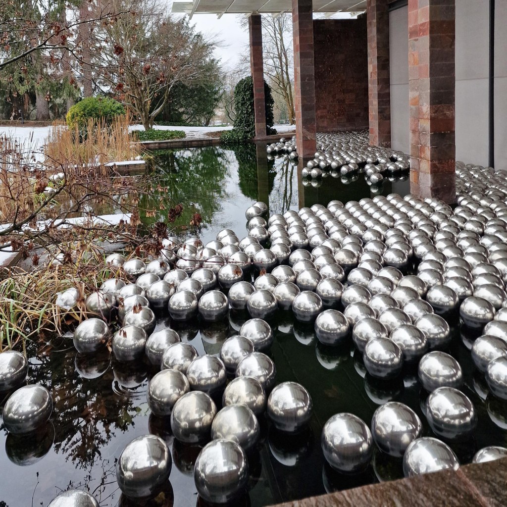Über Nacht hat sich eine dicke Schneeschicht leise auf unsern Garten gelegt. Sous la neige, notre jardin se repose. Die Natur ruht und doch weisen die Spuren im Schnee auf ein reges Nachtleben hin. Frau H. hat sich die letzten Karten für die grosse Retrospektive der japanischen Künstlerin Yayoi Kusama in der Fondation Beyeler gesichert. Kusama? Neuland für mich Kunstbanausen. Wenns denn sein muss, die SBB (Schweizer Bundesbahn) bringt uns ja auch bei widrigen Wetterbedingungen sicher nach Basel.