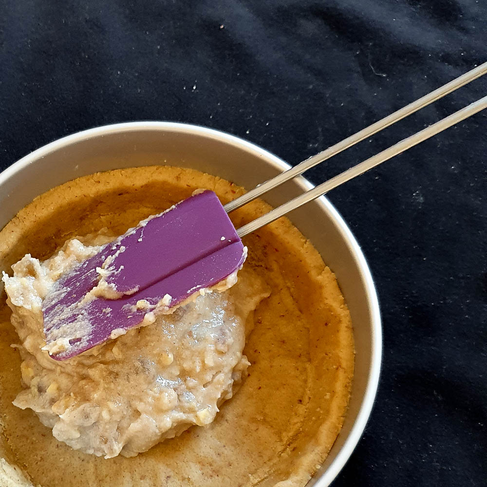 (7) Inzwischen den Guss zubereiten. Nach der Vorbackzeit auf der Tarte verteilen. Wieder in den Ofen auf die mittlere Rille schieben.