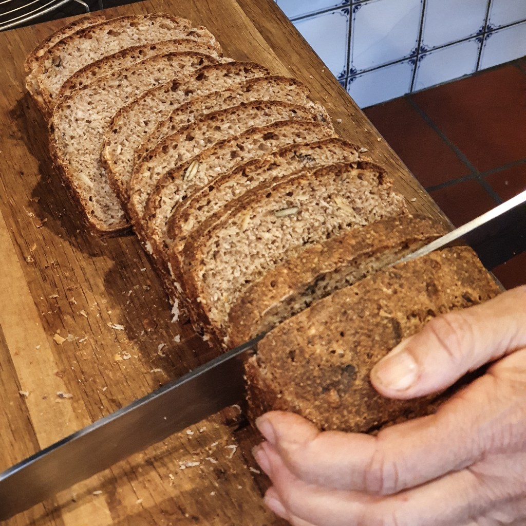 Das Bio-Vielkornbrot der Frau H. wurde von ihr, inspiriert durch ein Rezept von Micha, innerhalb zweier Jahre weiter entwickelt und optimiert und ist deshalb erprobt. Aus gutem Grund unser täglich Hausbrot.