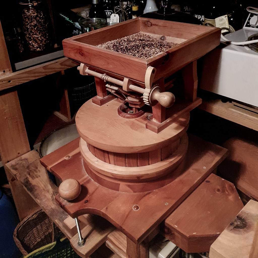 Das Früchtebrot von Meister Werner besteht aus einer geballten Ladung an Früchten. Auf 3.7 kg Trockenfrüchte kommen ganze 450 g Brotteig. Neben Dörrbirnen, -zwetschgen, -aprikosen und -äpfeln auch Feigen, Datteln, Rosinen, Sultaninen, Baumnüsse, Haselnüsse und Mandeln. Zumeist Früchte, die im Juragarten der Frau H. nicht wachsen. Was hier wächst sind Damasson-Zwetschgen, Äpfel, Birnen und Baumnüsse. Das reicht.