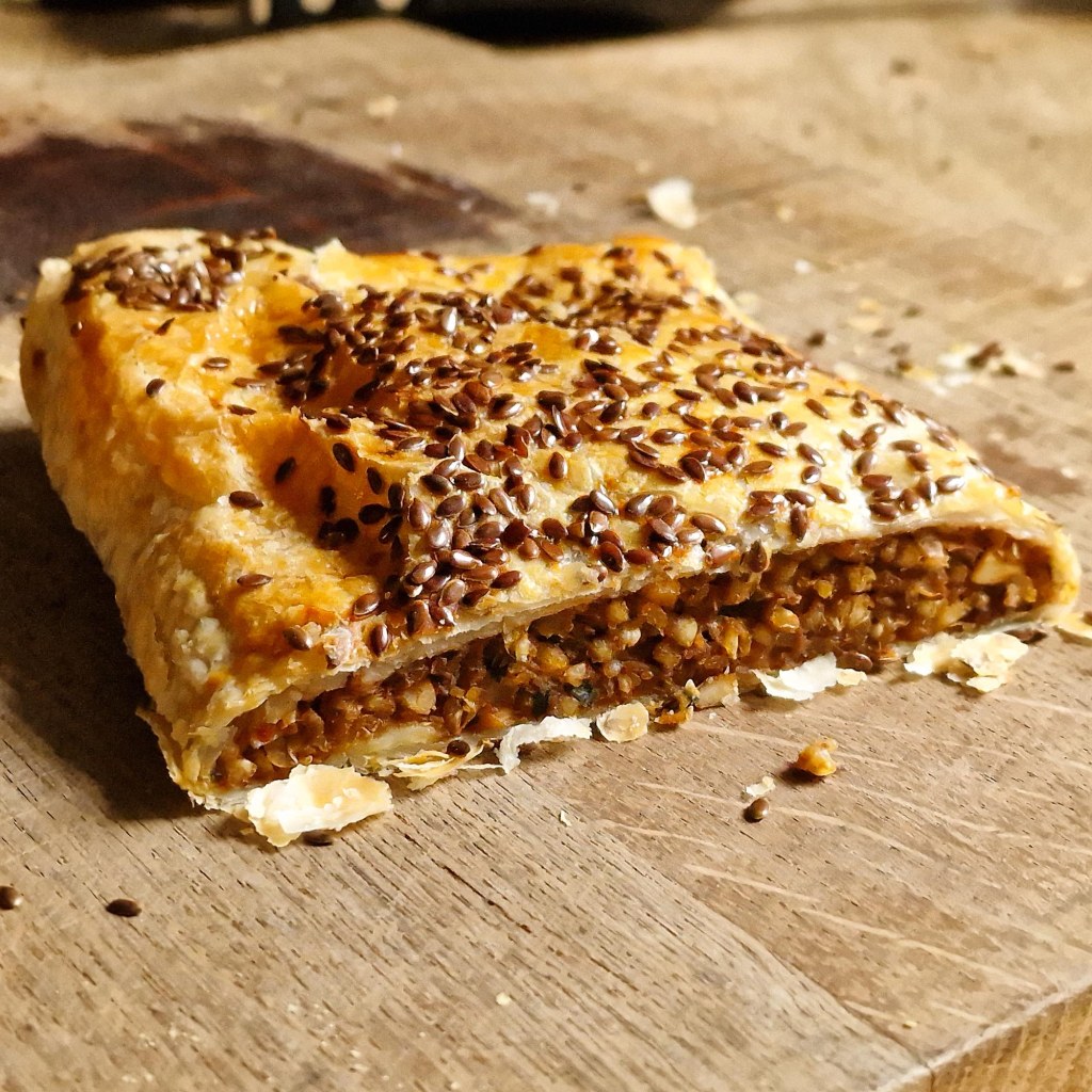 ca. 300 g Blätterteig, (L.: Fertigteig 320 g, rechteckig, 20×32 cm)