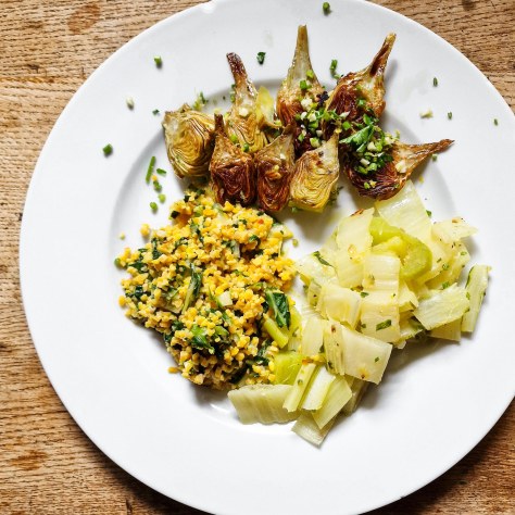 (5) kleine Röschen ganz belassen, grosse Röschen halbieren, Strunk einschneiden. Jeweils 2-3 Blättchem abzupfen und als Garnitur beiseitestellen. Die Röschen im Dampfgarer 1 Minute bei 110°C vorgaren. Herausnehmen, Abtropfen lassen und in einer Pfanne in wenig Olivenöl anbraten. Abschmecken mit Salz, Pfeffer und Zitronenschale. Am Schluss mit einem Spritzer Zitronensaft.