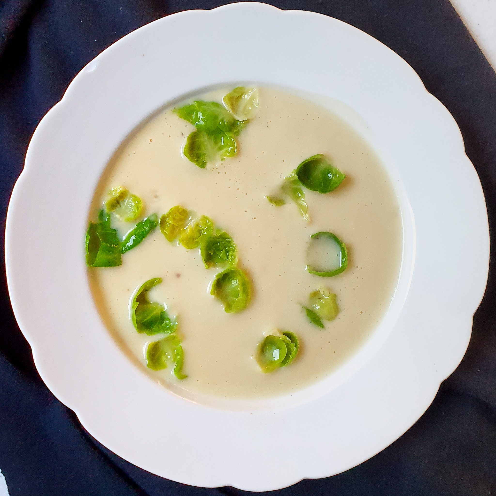 (3) Zwiebel in Butter farblos dünsten, Lauchstreifen zugeben, kurz mitdünsten, ablöschen mit Noilly Prat und Gemüsebrühe. Leise köcheln bis der Lauch weich ist. In den Mixbecher des Vitamix geben und sehr fein purieren. Rahm und Kartoffeln zugeben und kurz(!) durchmixen. Abschmecken und kühl stellen.