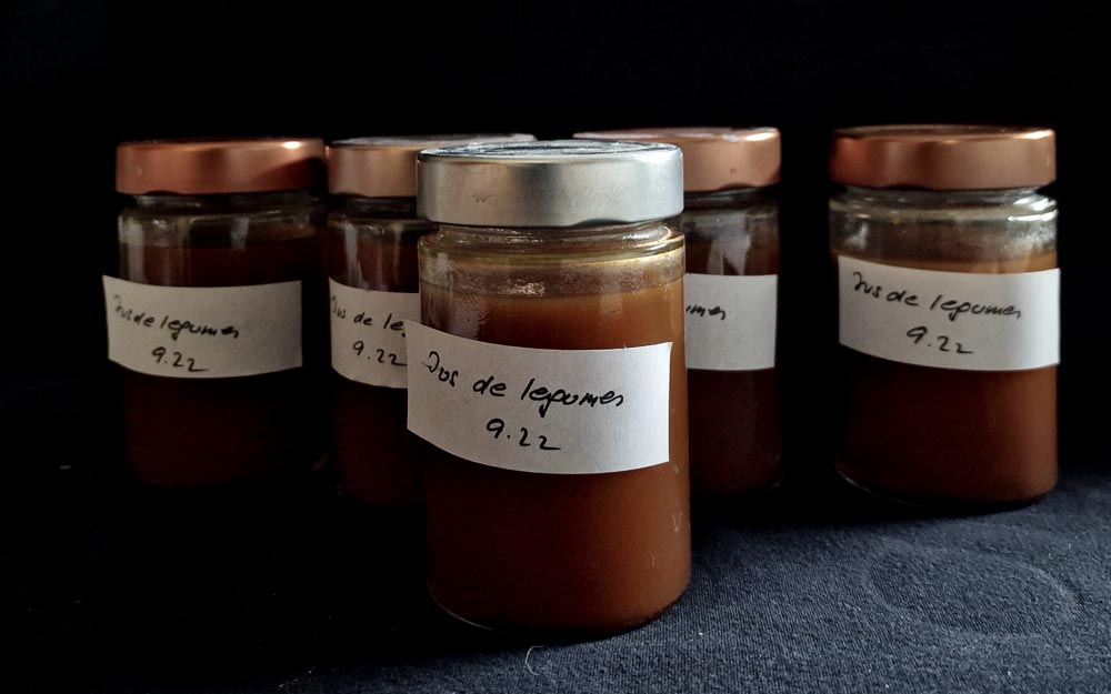 Anmerkung: Ausbeute: 6-8 dl Jus (je nachdem wie stark konzentriert wurde). Die Version mit den Braunen Raslingen geriet dunkler und wirkt wie eine Umamibombe.