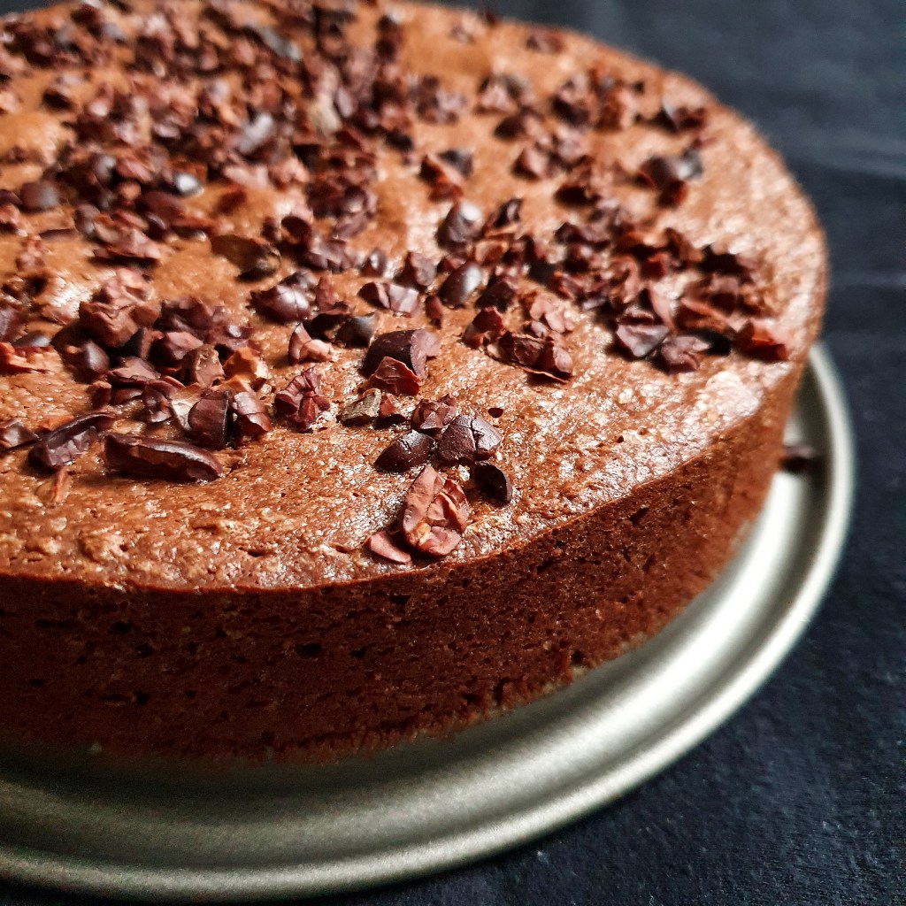 Gâteau fondant au chocolat et aux éclats de fèves de cacao, sans farine