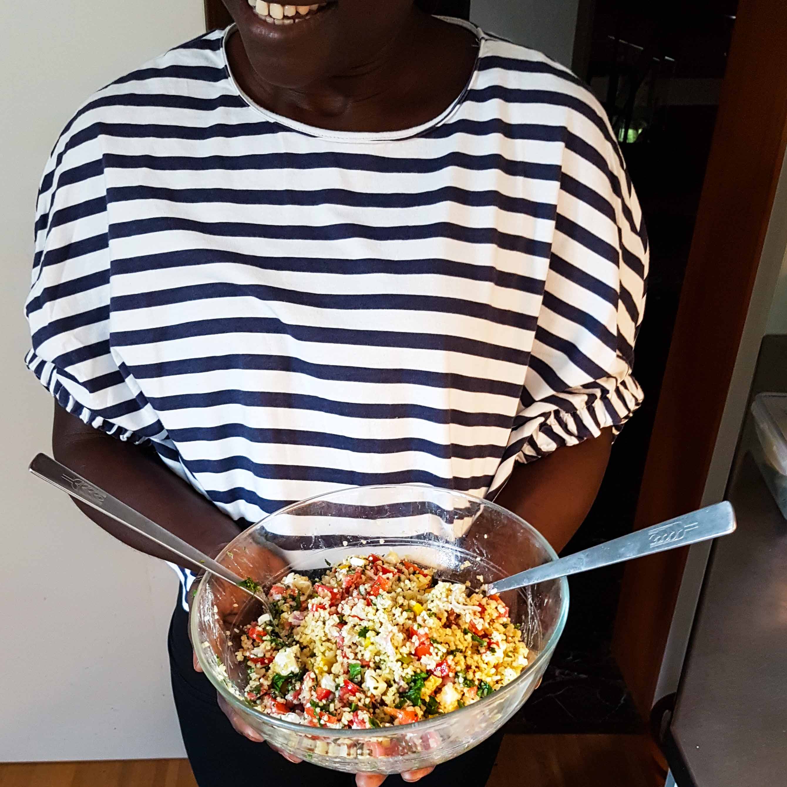 Kurzum: Rahm habe ich durch Kokosmilch ersetzt. Basilikum durch Salbei und Rosmarin. Der Speck durfte zur Freude der Nichtvegetarier (1 von 6) bleiben. Ein rundum gelungenes Winter-Wohlfühl-Gericht für eine gesellige Runde.