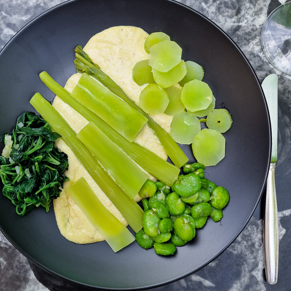 serviert mit den allerletzten Fave (die Sauce hätte eigentlich passiert werden müssen)