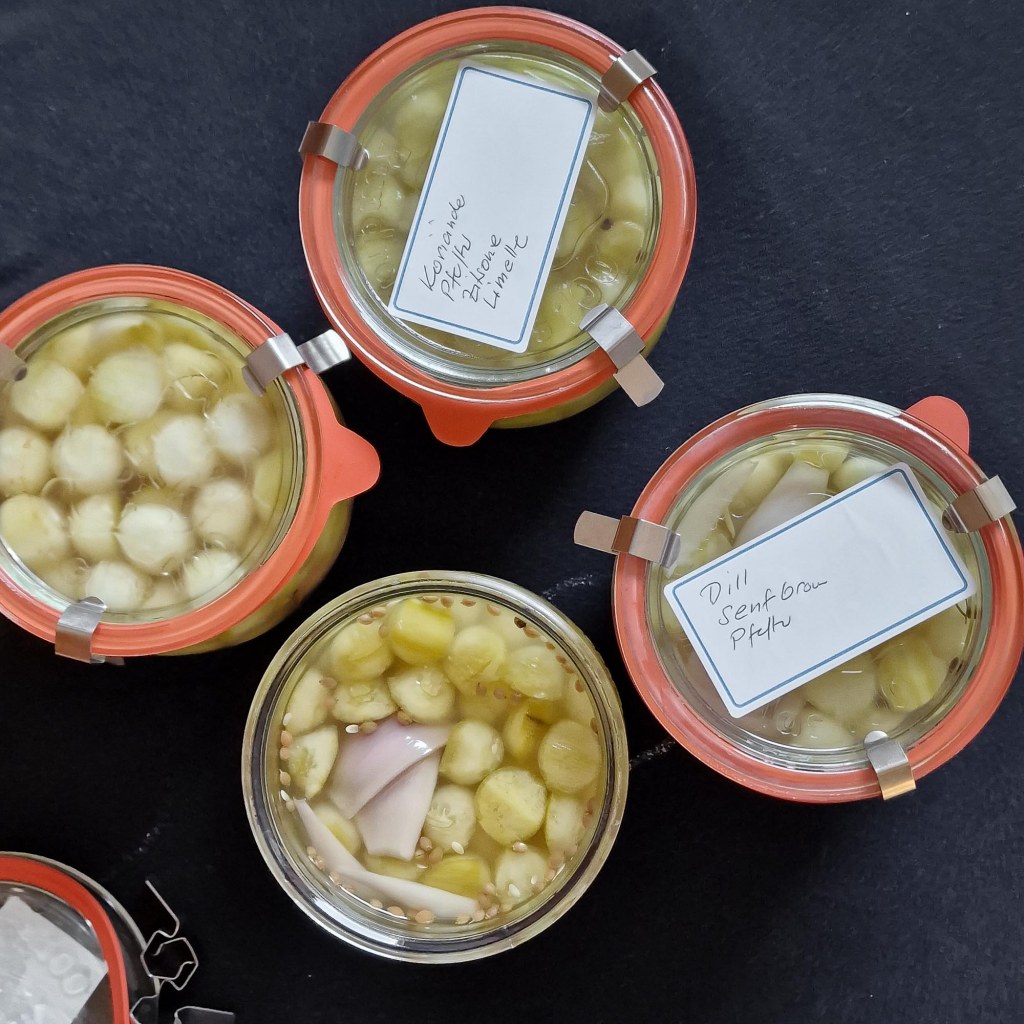 Überschussverwertung oder Überdrussabbau? Wer im Frühsommer zuviele Kürbisse anpflanzt (eines der Lieblingsgemüse von Frau H.), darf sich nicht wundern, wenn sich die Kürbisse im Spätherbst in der Remise quer und hoch stapeln.
